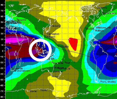 Polar gambaran ionospheric ini menunjukkan pada kadar propagasi sekitar Malaysia dan Hawaii. Gambaran ini diambil pada sebelah pagi ini bagi menunjukkan kenapa propagasi membuka kearah itu.